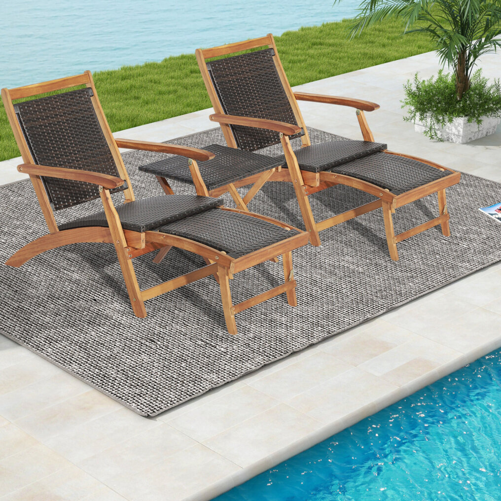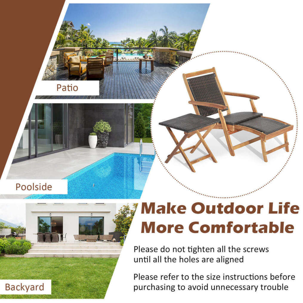 ● Foldable Design: Both the patio chair with retractable ottoman and side table are foldable so that this patio furniture set can lie down on the ground or lean against the wall, greatly saving your outdoor space. Moreover, the lightweight structure allows you to carry them easily.