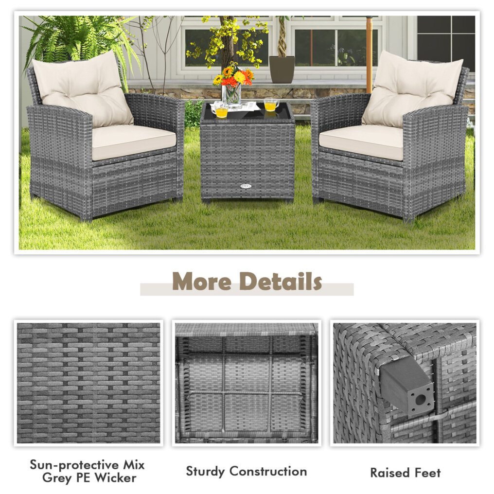 Built-to-Last Material: The 3 pieces all feature reinforced steel structure, which resists to rust, bending and deformation. The solid crossed structure enables each sofa to withstand 180 kg heavyweight. Furthermore, the PE rattan surface makes the whole set weather-resistant, ensuring long-lasting service life.