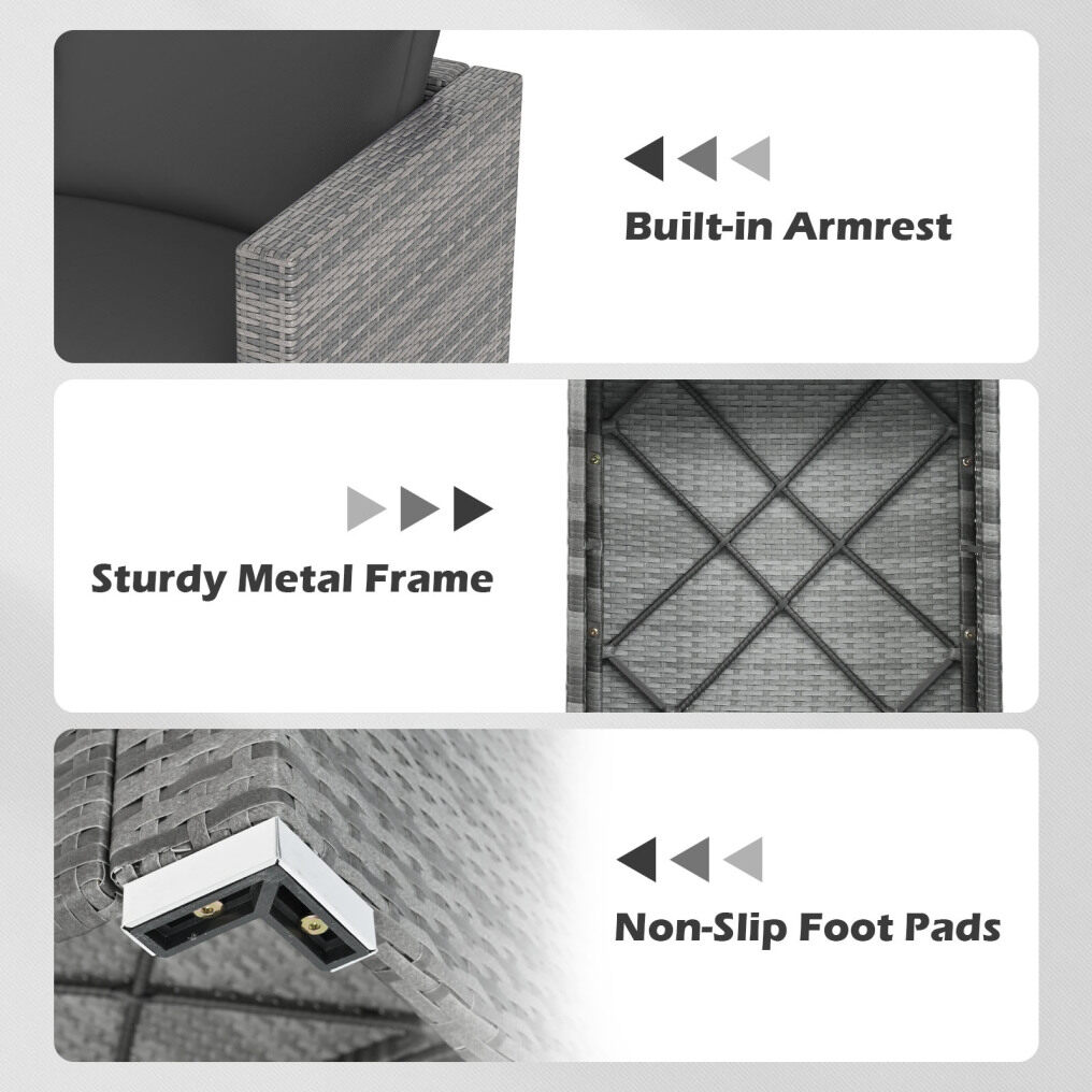 ● Soft Back & Seat Cushions: Filled with resilient sponge, the soft back and seat cushions on this outdoor seating furniture provide you with an extra layer of comfort for long-lasting relaxation. Equipped with smooth zippers, the removable covers are easy to clean, keeping your seating fresh and inviting.