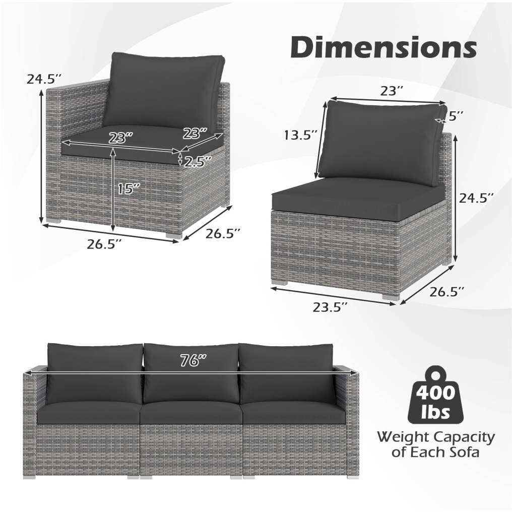 ● Wide Outdoor Application: Designed to brighten your patio, garden, or poolside area, the outdoor sectional seating balances practicality with elegant design for years of enjoyment. Dimensions of each arm sofa: 26.5" × 26.5" × 24.5", dimensions of each armless sofa: 23.5" × 26.5" × 24.5" (L × W × H).