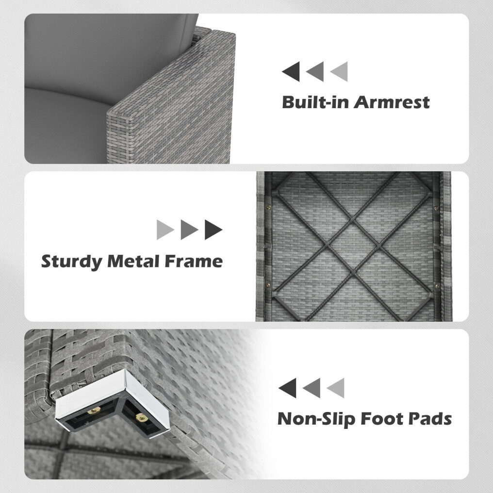 ● Soft Back & Seat Cushions: Filled with resilient sponge, the soft back and seat cushions on this outdoor seating furniture provide you with an extra layer of comfort for long-lasting relaxation. Equipped with smooth zippers, the removable covers are easy to clean, keeping your seating fresh and inviting.