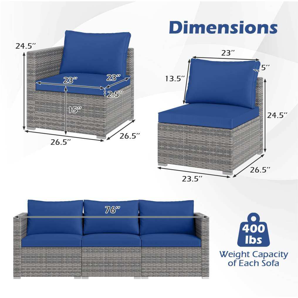 ● Wide Outdoor Application: Designed to brighten your patio, garden, or poolside area, the outdoor sectional seating balances practicality with elegant design for years of enjoyment. Dimensions of each arm sofa: 26.5" × 26.5" × 24.5", dimensions of each armless sofa: 23.5" × 26.5" × 24.5" (L × W × H).