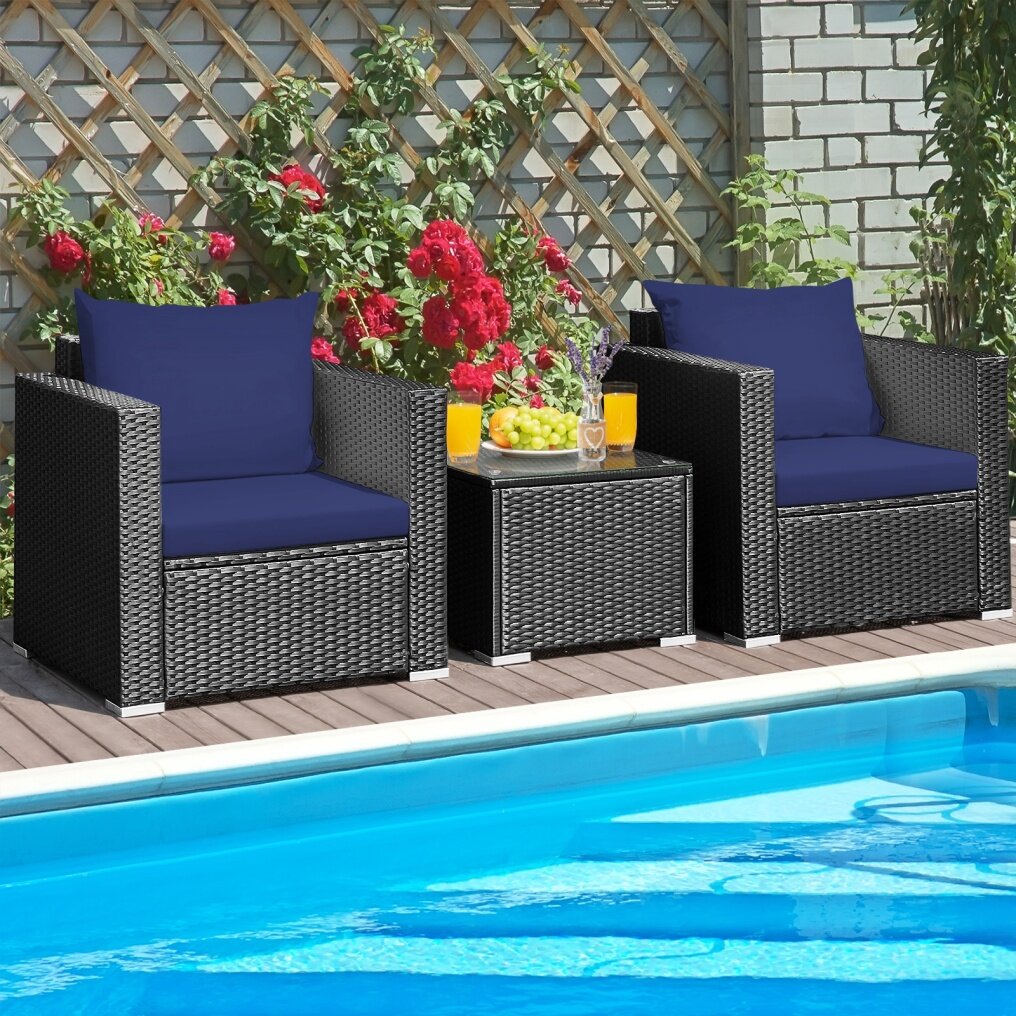 If you want to drink coffee or have a break with your friend in your garden, patio, or yard, this 3-piece outdoor rattan furniture set is a good choice for you.
