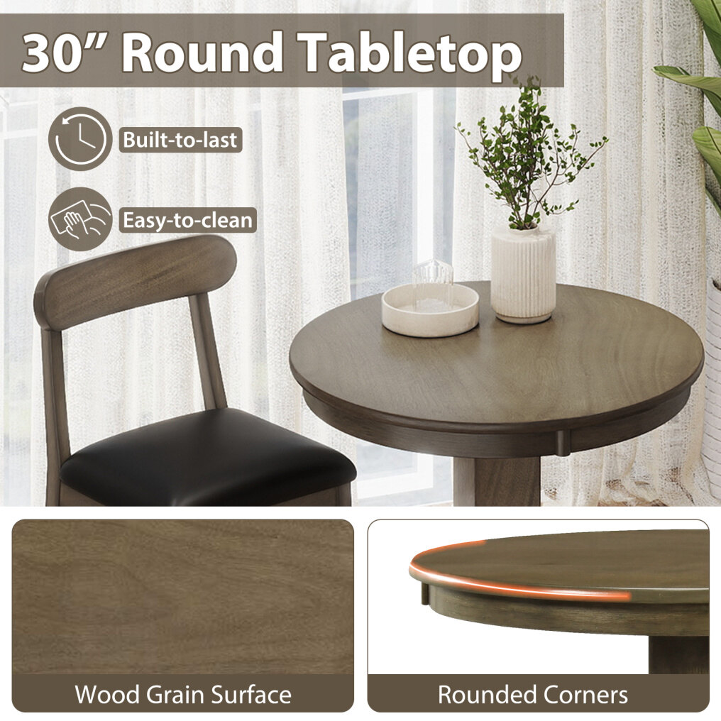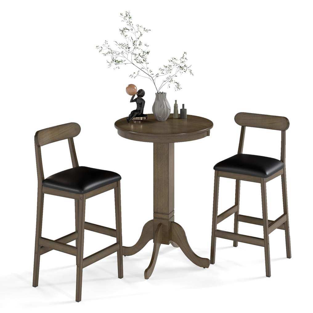 ● Rustic Charm and Versatility: With its graceful pedestal and simple yet classic silhouette, the round bar table with stools infuse any space with a touch of farmhouse warmth and enduring elegance, making it a charming addition to kitchens, bistros, or breakfast corners.