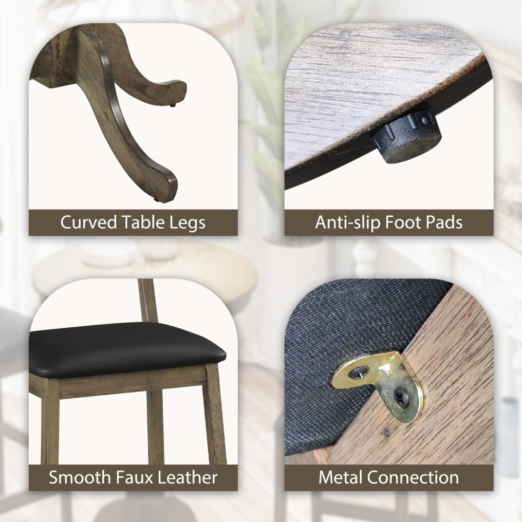 ● Premium Materials for Durability: Constructed with a solid rubber wood frame, the wood pub table set offers robust durability that resists warping. Additionally, the faux leather upholstery is easy to clean with a simple wipe, ensuring long-lasting use.
