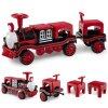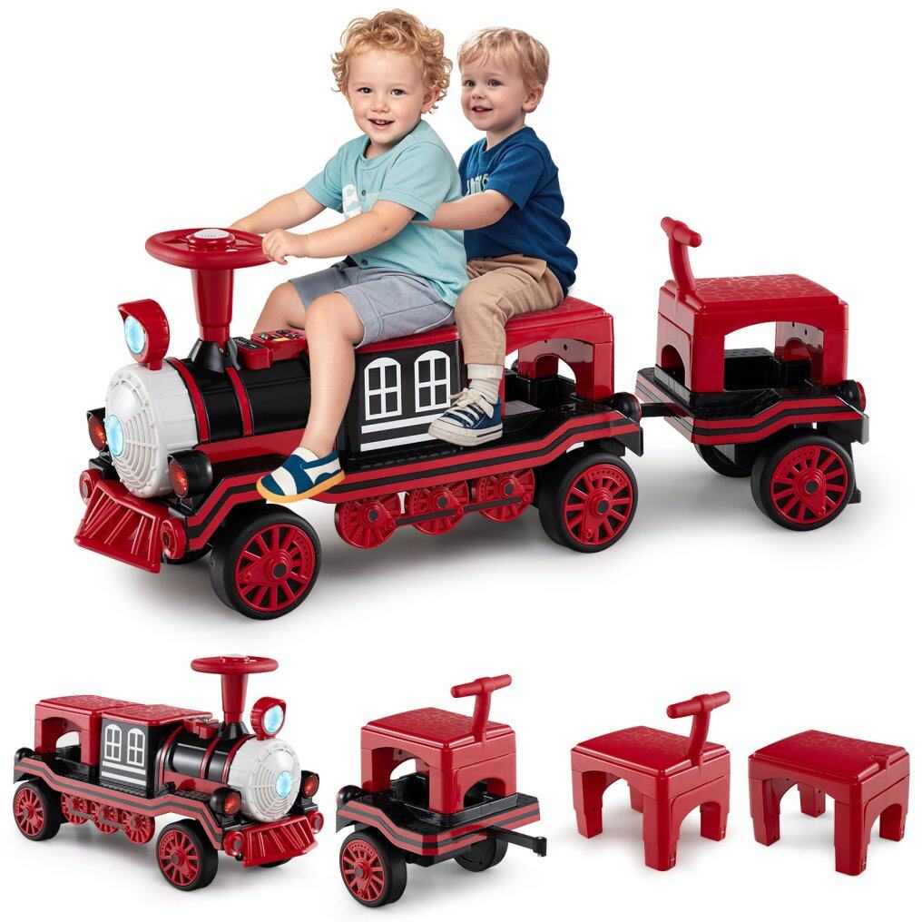 ● Seat up to 3 Children: The ride on train set includes 2 seats on the locomotive and 1 seat on the carriage, supporting 3 kids up to 165 lbs weight capacity. 2 of the seats can be removed apart from the locomotive and carriage for versatile play, or attached for a shared adventure.