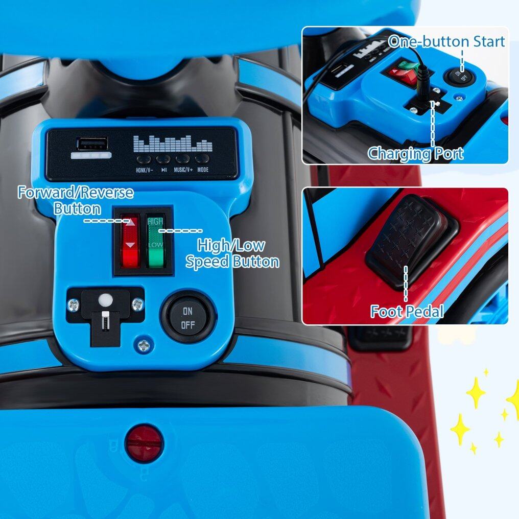 ● Delightful Adventures: Featuring a steering wheel with light and sound controls, this 12V ride on toy will ignite your child's imagination. The train whistle, music, LED middle light and side lights mimic a real train driving environment, while the USB port offers more entertainment options to elevate playtime.