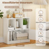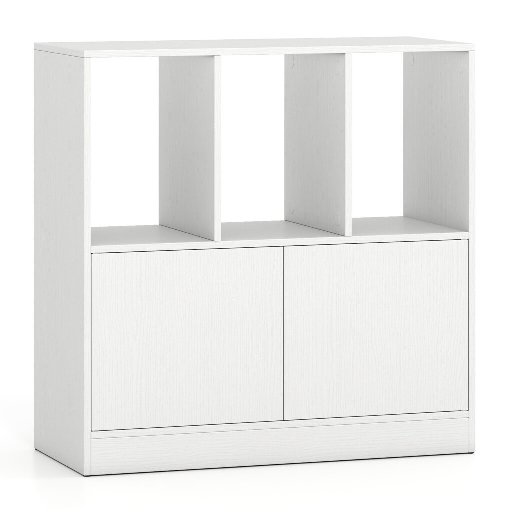 With three open cubes, this bookshelf offers ample space to display books, photos, plants, or storage boxes. The enclosed cabinet provides concealed storage for items, ensuring a neat and tidy appearance. Equipped with two anti-tip devices, this modern display shelf offers added safety thanks to its secure wall mounting. This contemporary cube shelf serves not only as a bookshelf but also as a versatile display and storage unit. Its functionality is complemented by its attractive design, making this freestanding shelf an ideal addition to both home and office.