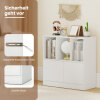The 2-door storage cabinet keeps everyday items hidden and organized.