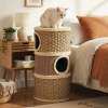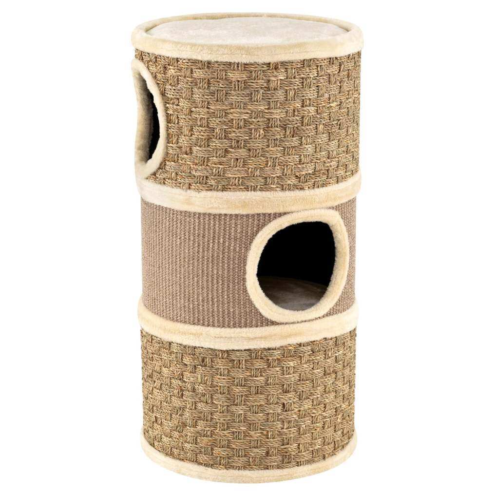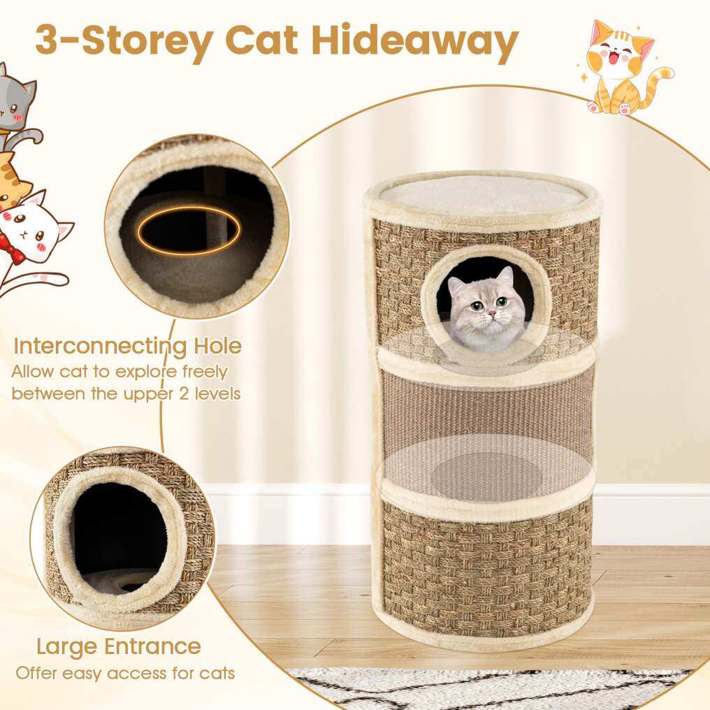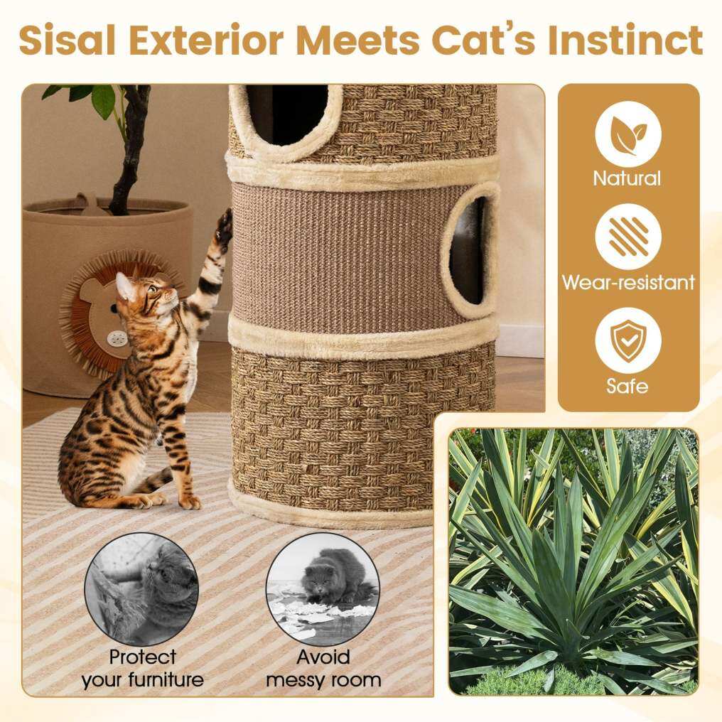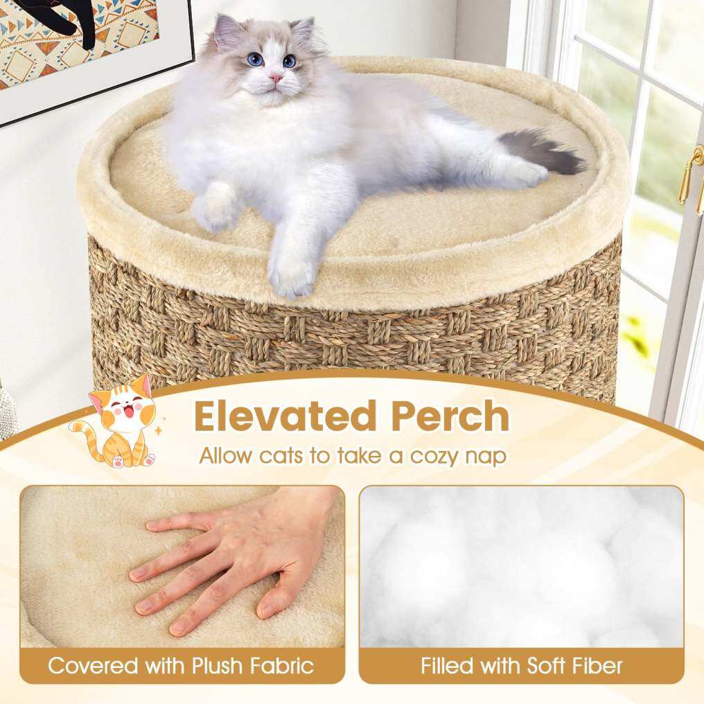 【High-Quality Materials】The barrel-shaped tower is made of breathable and durable seaweed rope, offering a rustic aesthetic with robust strength. Additionally, the plush fabric inside the condo provides exceptional comfort for kittens.