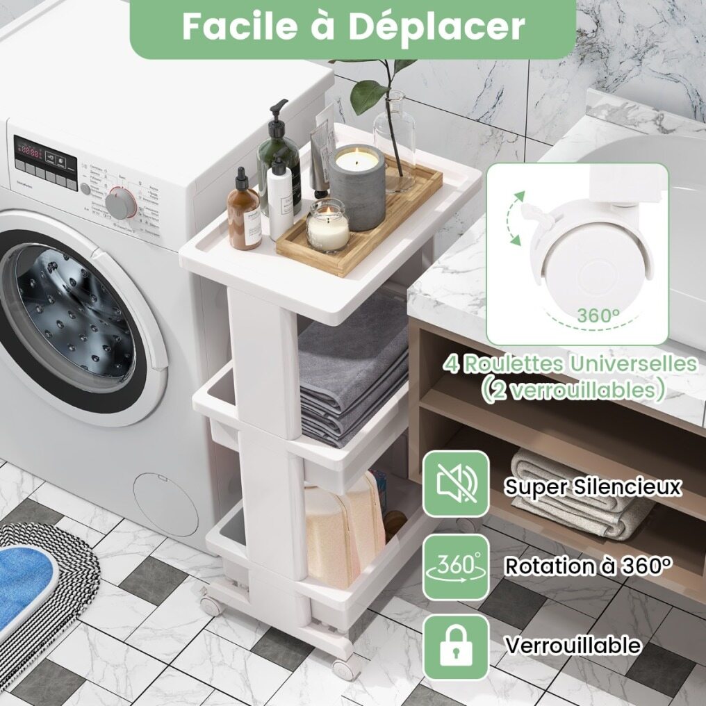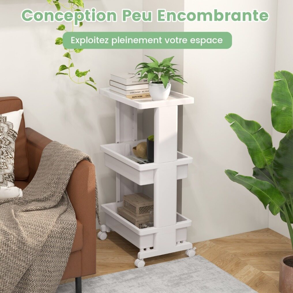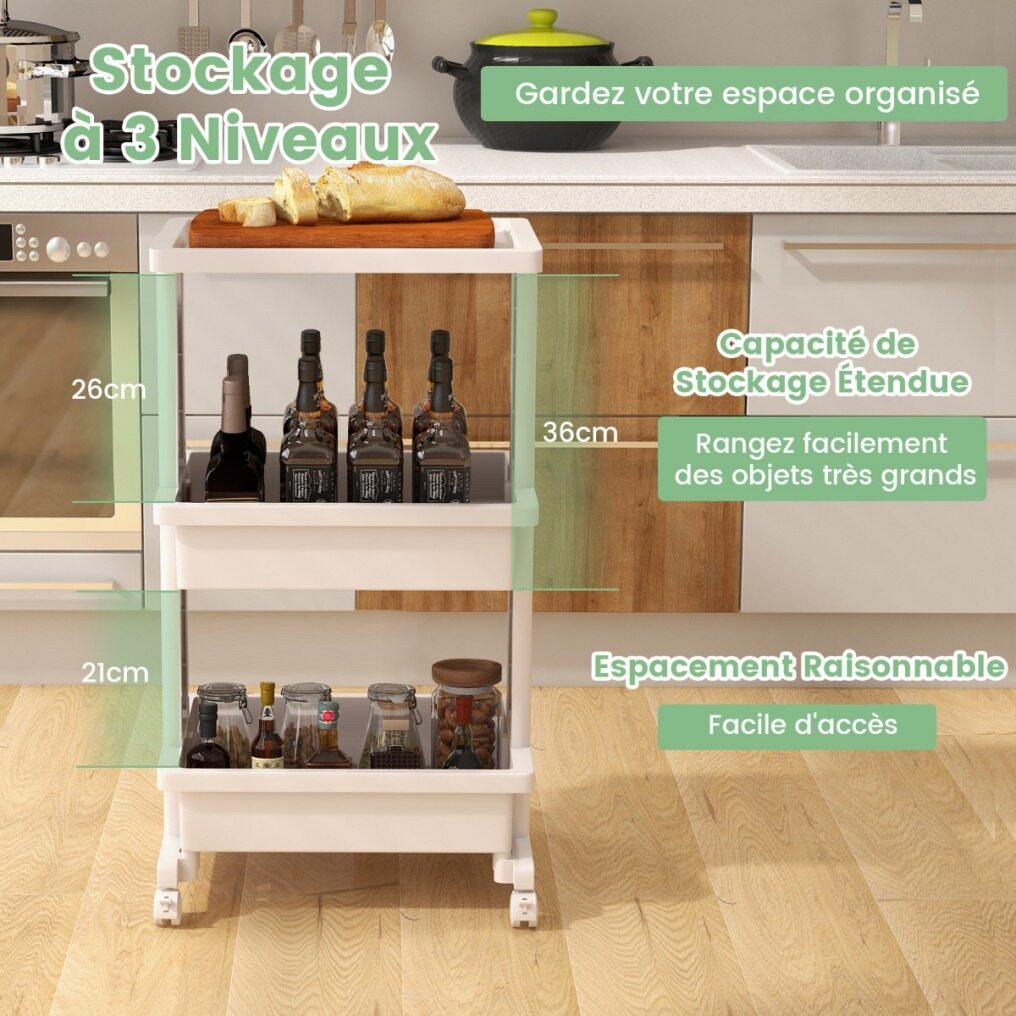 Space-Saving Design: This 3-tier rolling cart has a compact footprint that fits seamlessly into small areas. Whether tucked into a corner or placed next to existing furniture, it maximizes functionality without creating clutter.