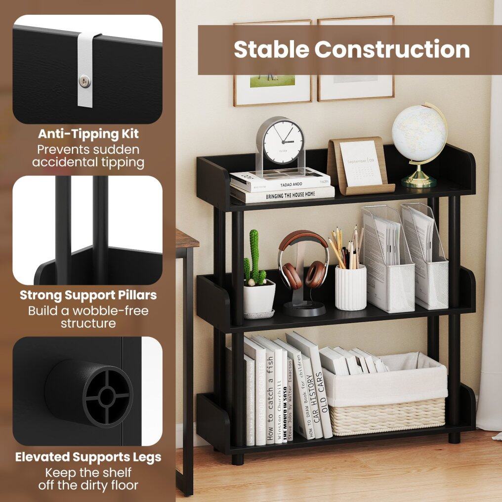 ● Ample Storage for All Your Needs: Designed with 3/4/5-tier shelving, the bookshelf provides abundant space to neatly organize your favorite books, plants, photos, etc. Moreover, its anti-falling guardrails ensure your items stay secure.