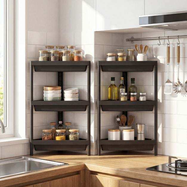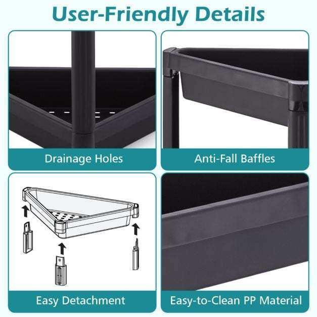● Tool-Free Quick Assembly: These corner storage organizers are designed for easy, tool-free assembly, which allows you to insert each piece quickly and effortlessly, greatly saving your precious time.