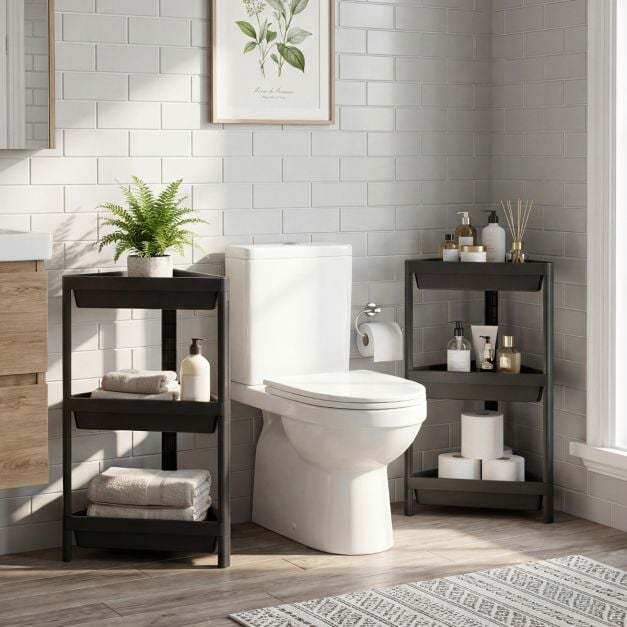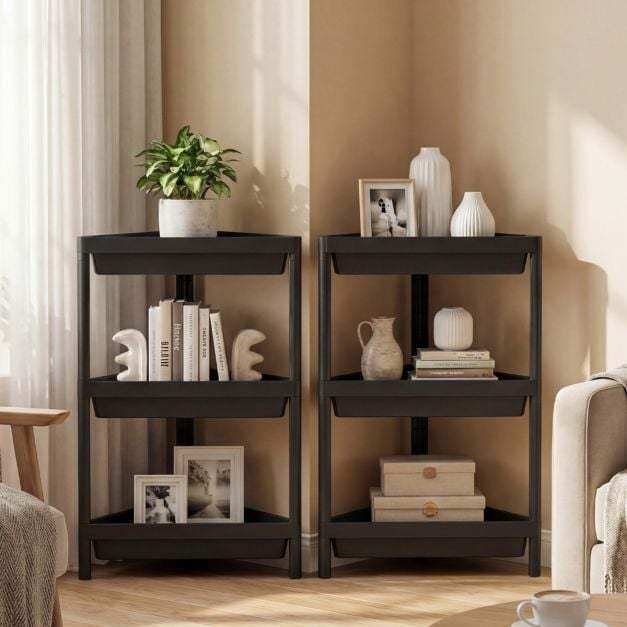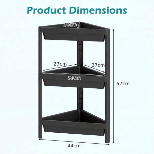 ● Ample 3-Tier Storage: Equipped with 3 spacious shelves and raised baffles, each corner shelf stand securely holds a variety of items while preventing them from falling off.