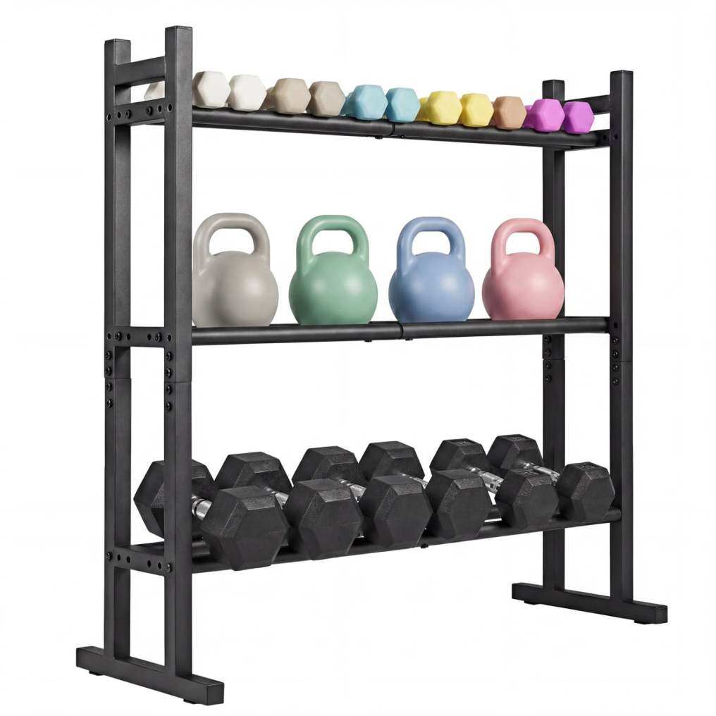 ● Compact Vertical Design: With its upright multi-layer layout, this 3-tier dumbbell storage organizer helps maximize vertical space while minimizing floor usage. It also keeps your workout area tidy and efficient, making it ideal for home gyms, garages, or small fitness corners.