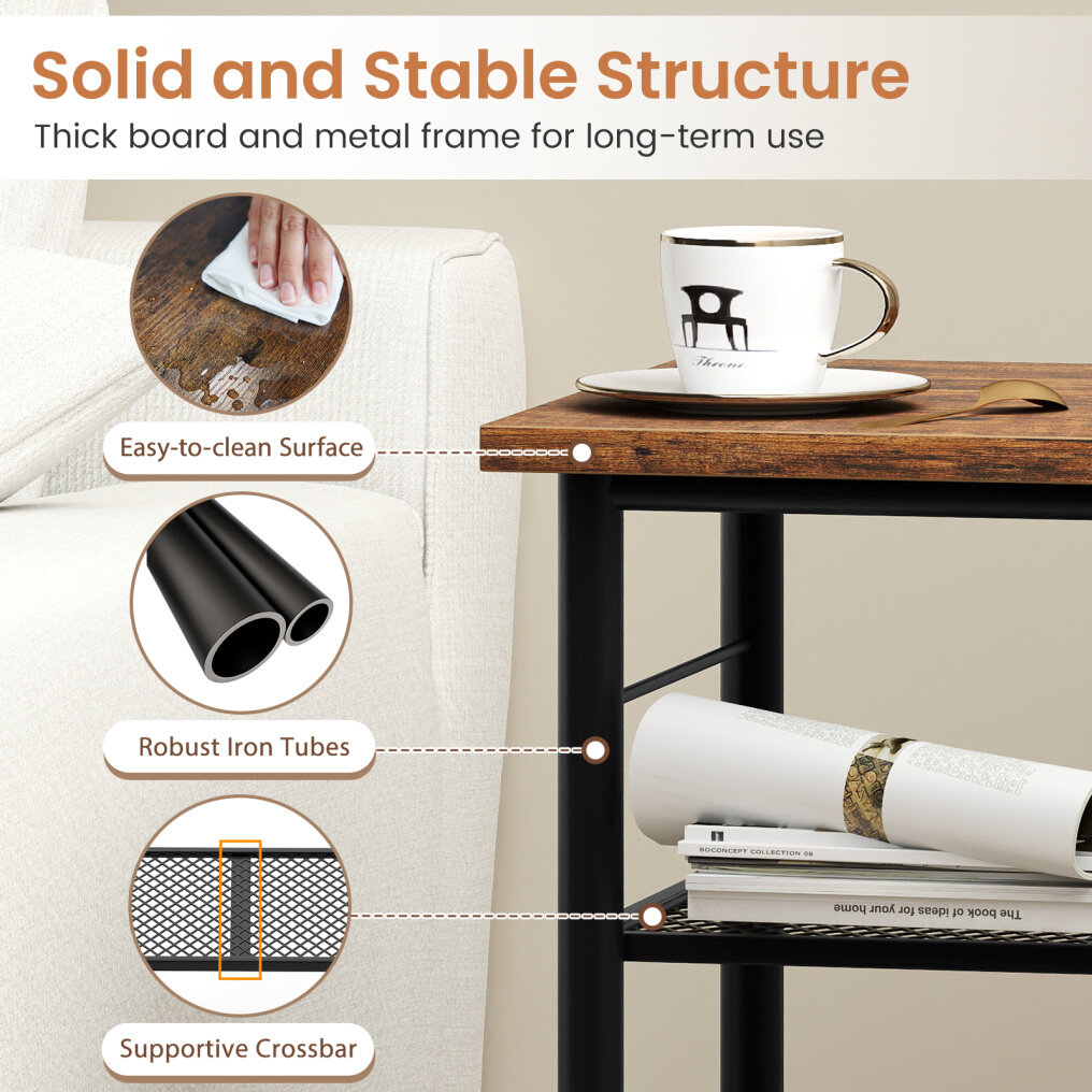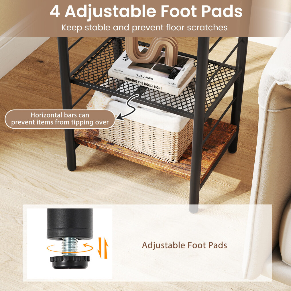 ● Customizable Convenience: Featuring a 4-position adjustable shelf, the end table is suitable for storing items of different sizes. Plus, the metal mesh storage rack comes with a supportive crossbar for promoted stability.