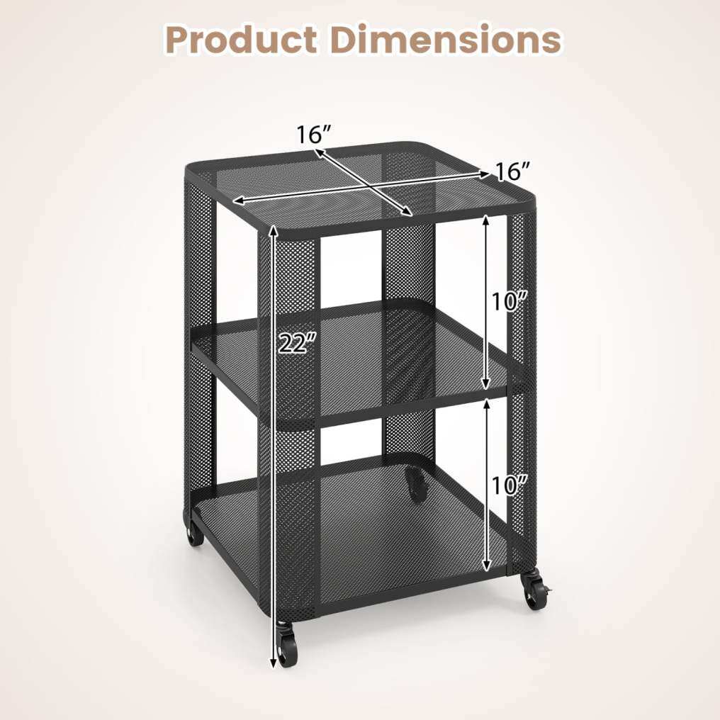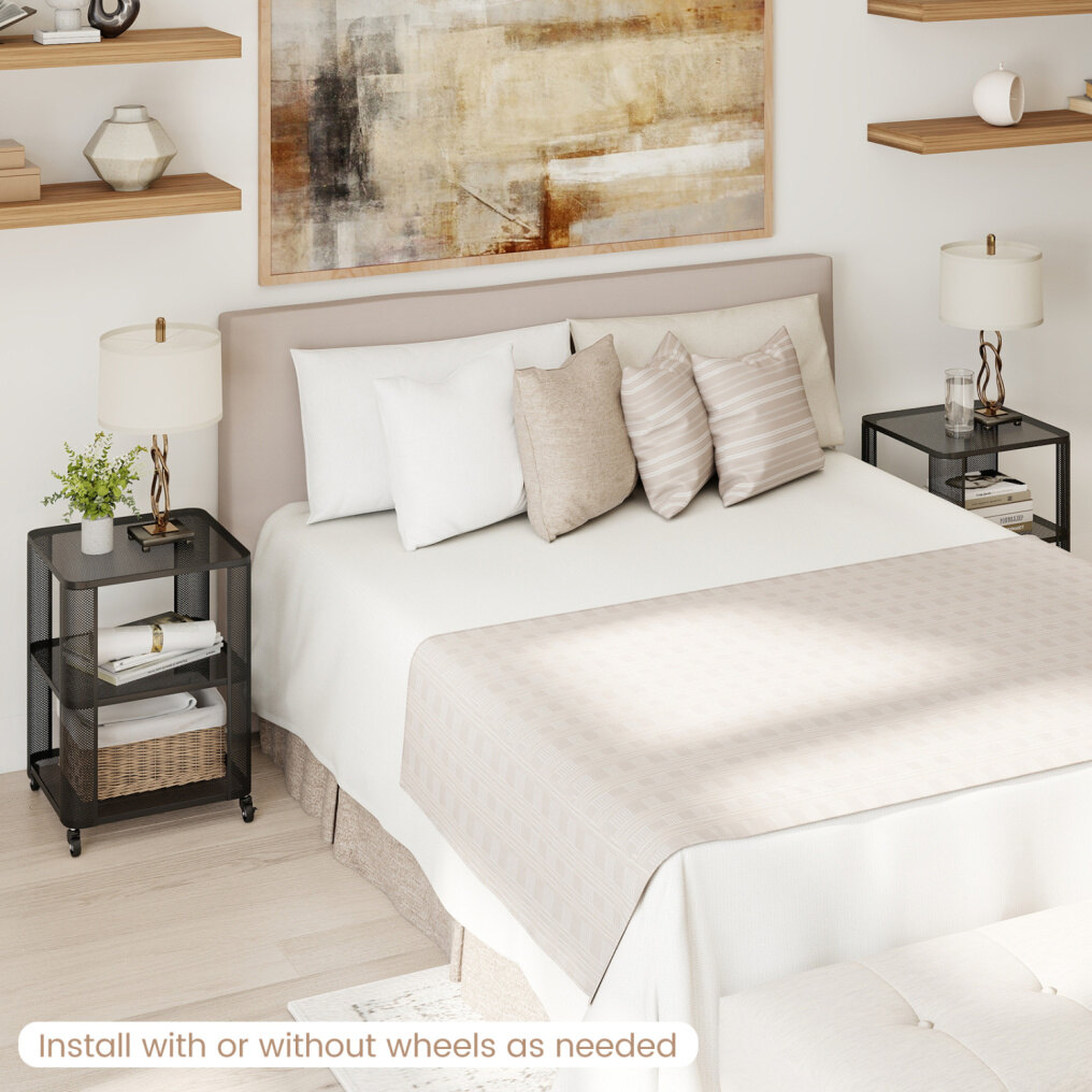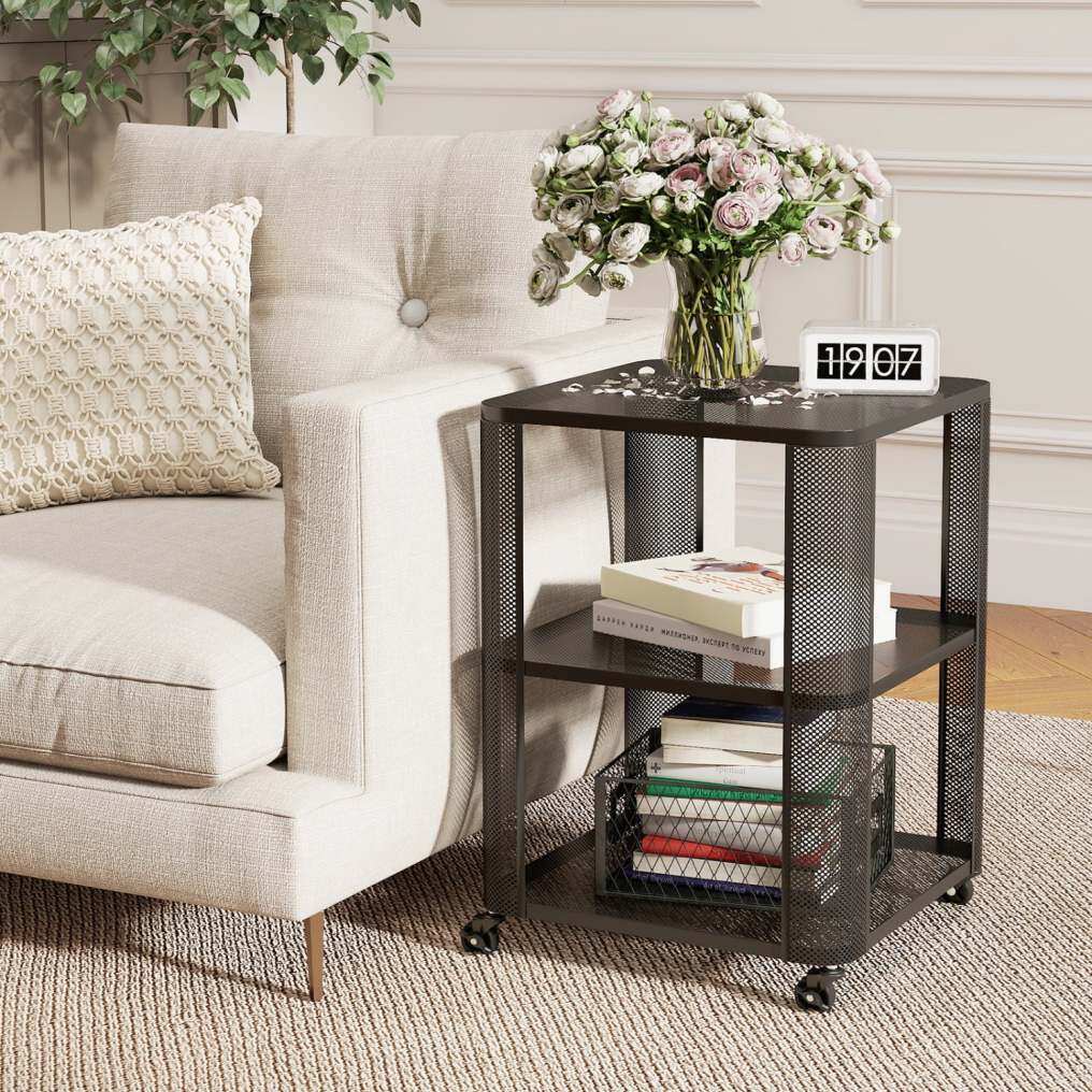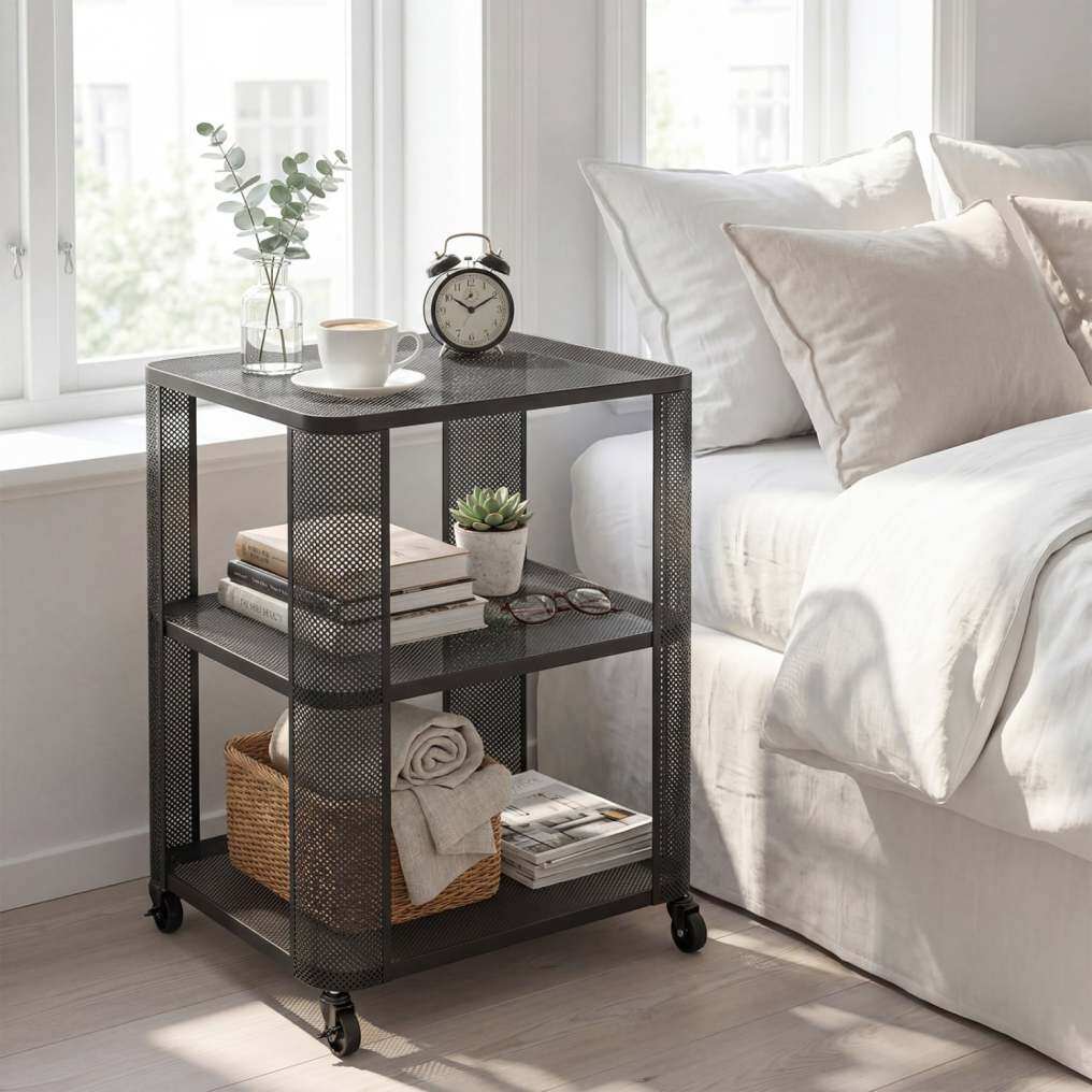 Ample Open Shelving: This 3-tier nightstand provides ample open storage space. The metal mesh grids allow you to organize books and lamps elegantly. Furthermore, it keeps daily essentials perfectly accessible.
