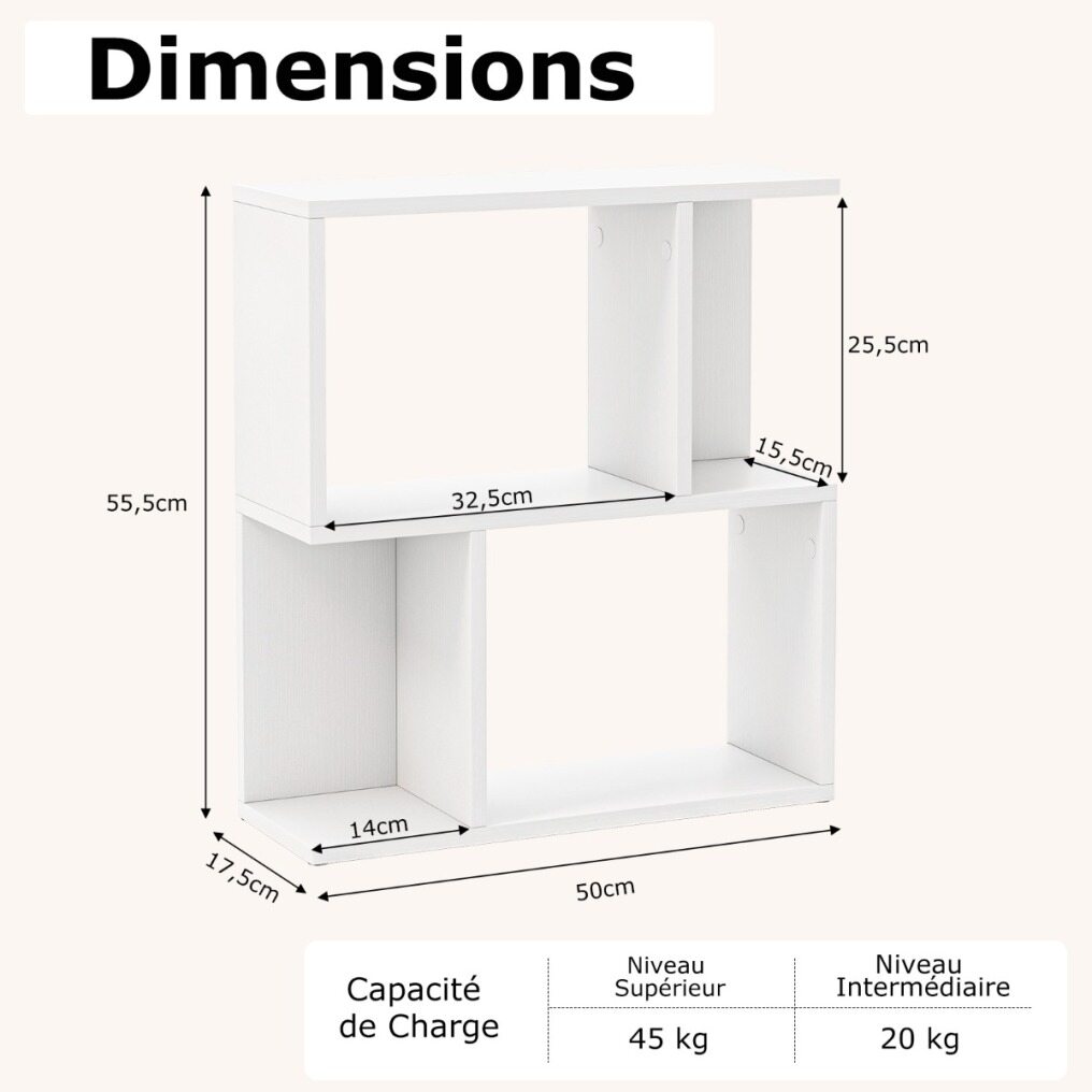 Robust Construction: The freestanding bookcase boasts a sturdy wooden structure that ensures great stability and longevity. The top shelf supports up to 45 kg and the middle shelf accommodates up to 20 kg.