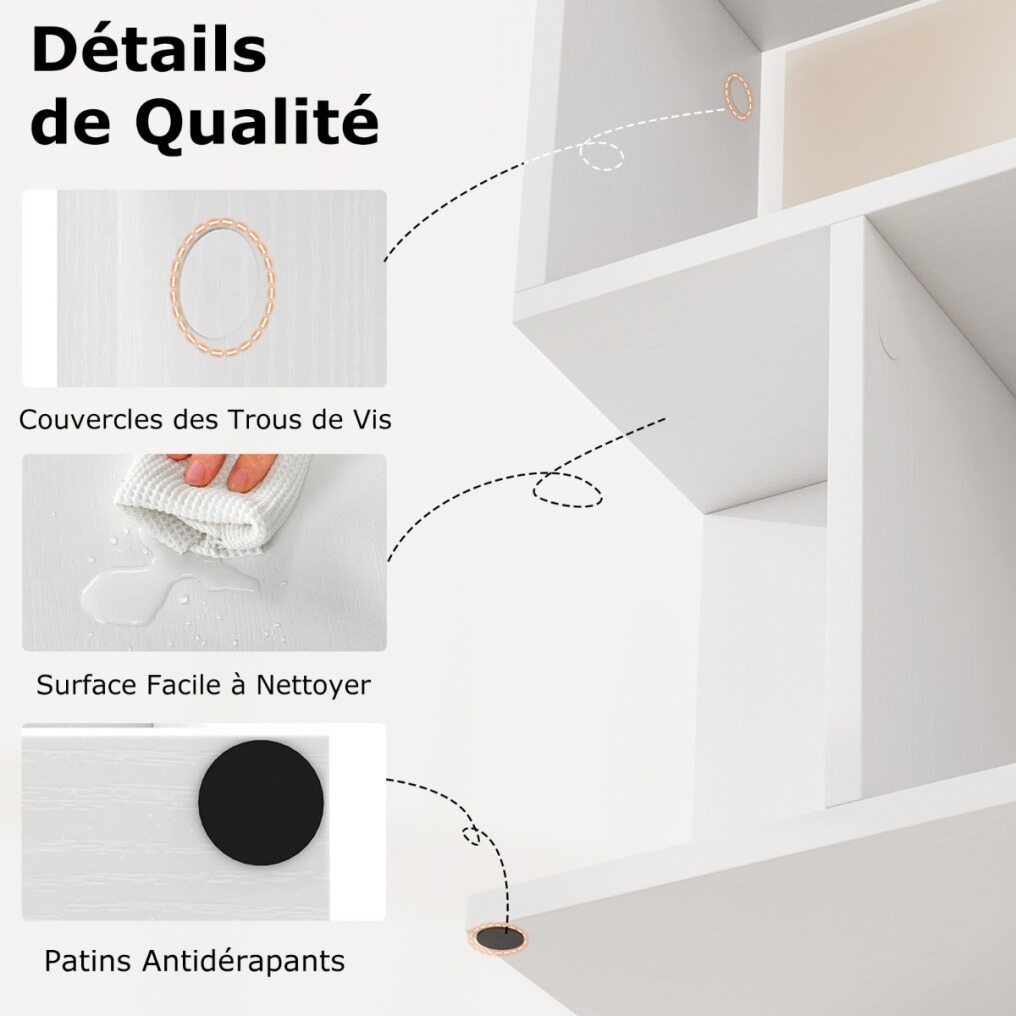 Premium Details: The 50 x 18 x 56 cm (L x W x H) storage organizer comes with screw hole covers for a sleek finish and easy maintenance. Additionally, it features anti-slip foot pads to protect your floors from scratches.