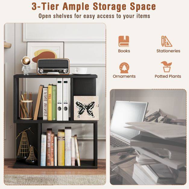 Ample Storage Space: The 3-tier bookshelf offers multiple storage options. Ideal for anything from potted plants to stationery, this storage unit features an open design, ensuring easy access and visibility.