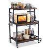 Perfect Storage Solution: This 3-tier storage cart provides plenty of room to organize kitchen essentials, such as microwave, coffee maker, toaster, dishes and spice jars. Additionally, 10 S-shaped hooks are convenient for hanging utensils or towels.
