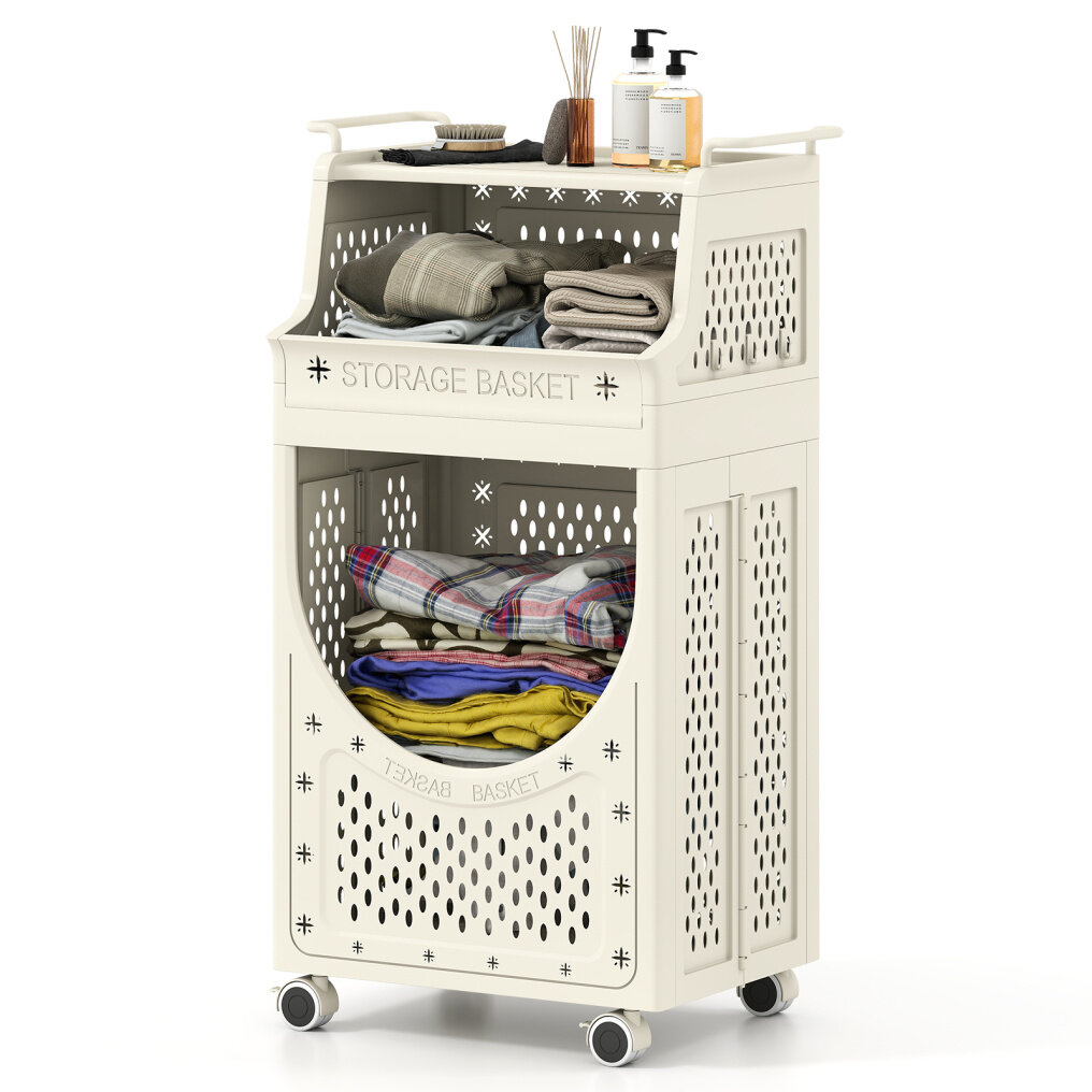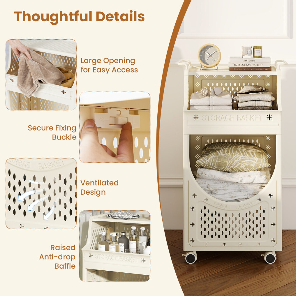 ● Thoughtful Details: Each basket in this rolling storage rack features a raised anti-drop baffle, so your essentials stay in place while in transit. The large openings allow easy access to your laundry, while the ventilated design keeps air circulating to prevent humidity from building up.