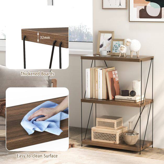 Revolutionize your decoration and organization with this expertly crafted, space-saving bookshelf! Why choose us? Fuse elegance with functionality as you transform clutter into art - presenting books and trinkets against a backdrop of industrial chic that complements any room. Worried about assembly headaches? Cast those fears aside! You’re minutes away from completing this simple setup and embracing a life of orderly bliss. Ditch the dread of wobbly furniture; our exclusive design with non-slip pads delivers peace of mind so your treasures never teeter. Act now - elevate your space and showcase your style with a versatile 3-tier display rack!