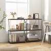 Stable Construction: Fear not for the security of your possessions. With the addition of non-slip foot pads, the versatile bookshelf remains unwavering on uneven floors. The 3-tier bookcase is equipped with thoughtful anti-tipping kits to ensure your items stay in place for added safety.