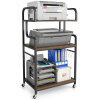 3-Tier Rolling Printer Stand Home Office Large Printer Cart with Storage Shelves-Rustic Brown