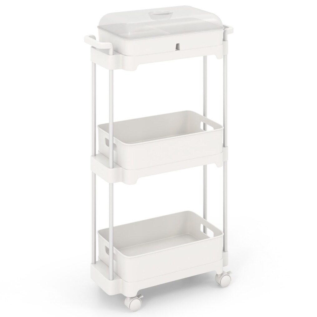 Unique and Practical Top Storage Box: The top box of this rolling utility cart features a transparent lid and 3 divided compartments, allowing you to customize your own storage solution. This unique addition offers convenience by keeping items within easy reach and neatly separated.