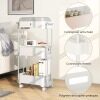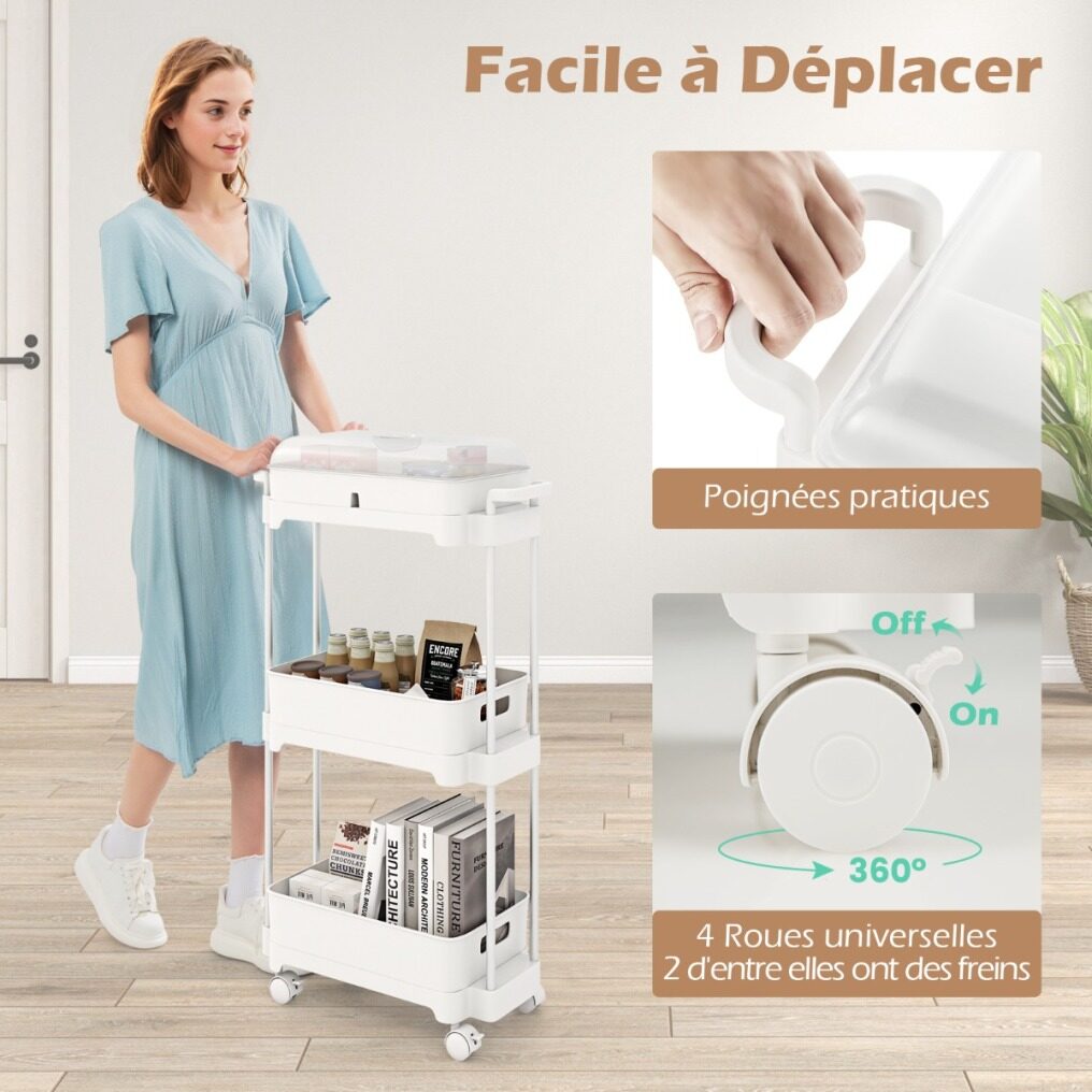 Crafted from a sturdy aluminum alloy frame, this mobile storage trolley boasts durability and sturdiness, making it a perfect addition to any room in your home or office. The top storage box comes with a transparent lid and 3 divided compartments, offering a unique way to keep your items organized and easily accessible. With its multi-functional design, this utility cart is versatile enough to handle anything, while the anti-falling design ensures your belongings stay safe. Rolling this cart is a breeze thanks to its 4 universal wheels, with 2 lockable wheels providing added stability when needed. Furthermore, the assembly of this storage organizer is simple and tool-free, allowing you to set it up in no time. If you are looking for such a product, do not hesitate to buy it!