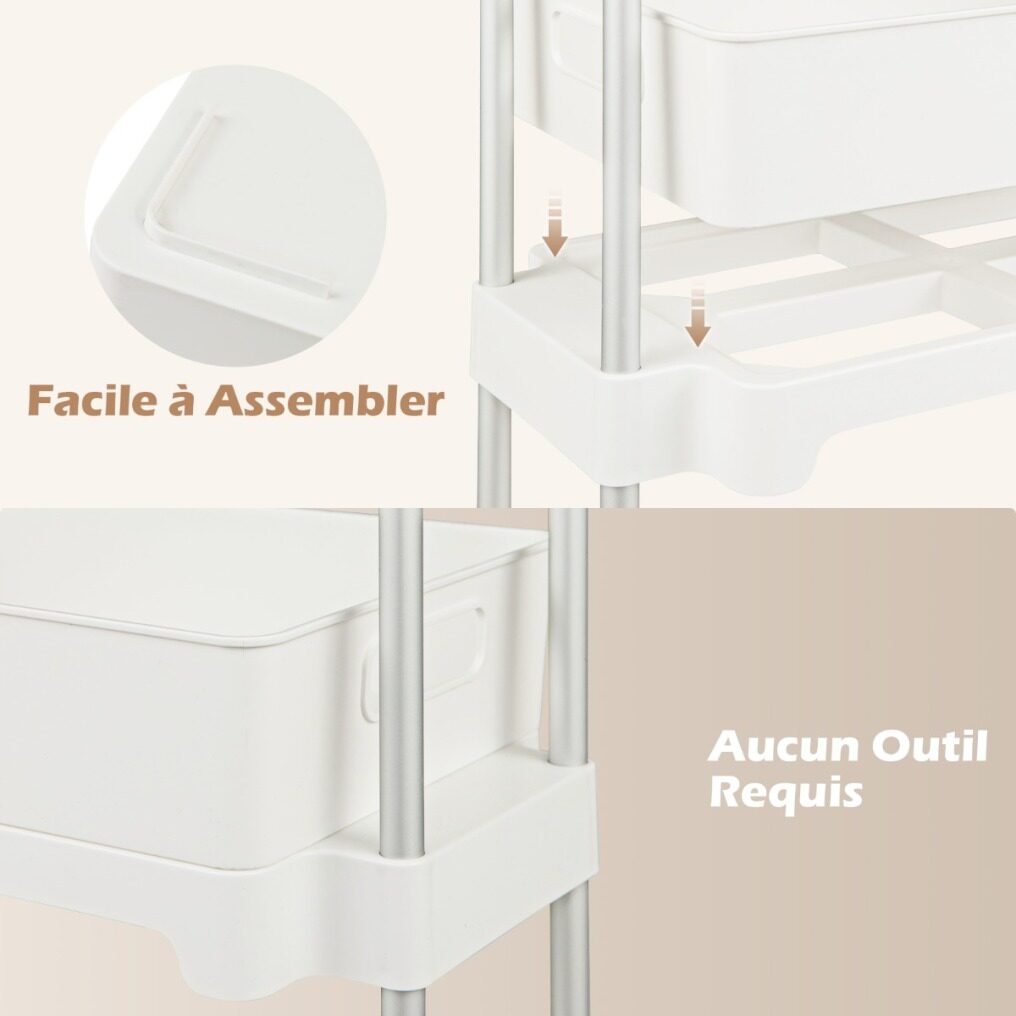 Easy to Assemble without Tools: Assembling this movable storage organizer is a breeze with its straightforward structure and step-by-step instructions. The click-together structure allows you to set up your new rolling cart without the need for tools, saving you time and frustration.