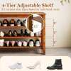 ● 3-Tier Adjustable Shelf: Featuring 3 adjustable shelves, this wooden shoe rack lets you customize spacing to fit various shoe types based on individual needs. Perfect for sneakers, heels and boots, it adapts to your household's storage style.