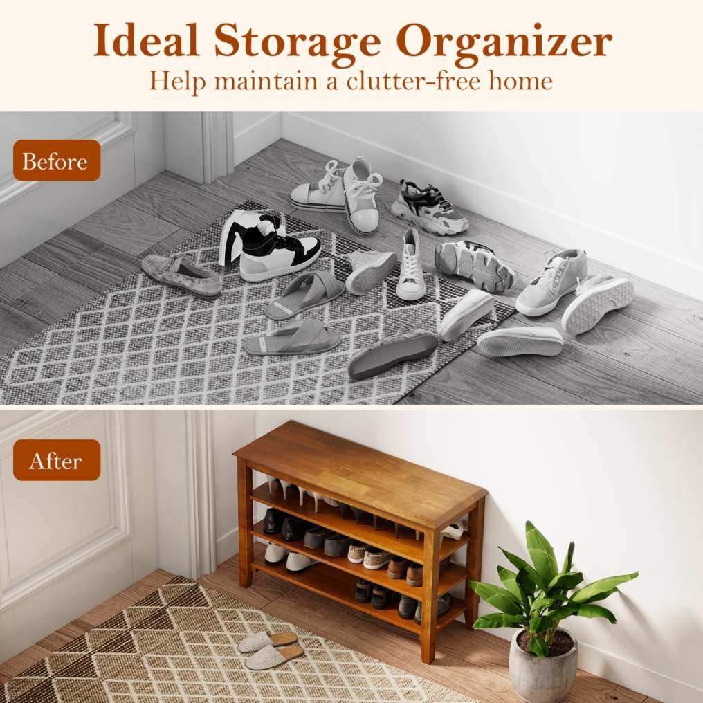 ● Ideal Storage Organizer: This 3-tier wooden organizer helps maintain a clutter-free home. Its ample storage space keeps daily footwear neatly arranged and within reach, transforming messy entryways or closets into orderly, welcoming spaces with minimal effort.