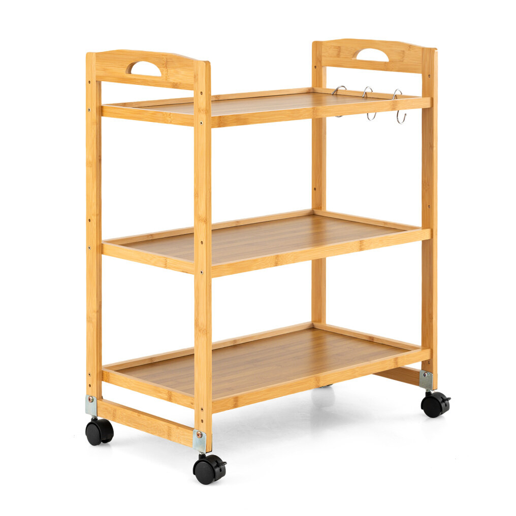 ● Strong Bamboo Construction: Built with a sturdy bamboo frame and thickened MDF boards, this 3-tier utility cart is designed for anti-deformation, long-lasting and crack-resistant performance. The bamboo frame is treated with PU coating for an easy-to-clean surface.