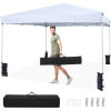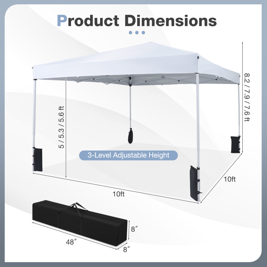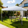 This foldable and portable canopy tent measures 290 x 290 x 230-248 cm (L x W x H), with 3 easily adjustable height positions, accommodating various outdoor activities, whether for family barbecues, festivals, vendor booths, or backyard relaxation. Its innovative pop-up structure allows for swift setup without the need for tools, and when not in use, you can easily collapse it and store it in a carrying bag, making transport and storage hassle-free. With its heavy-duty truss carbon steel frame and reinforced by sandbags, ground stakes, and wind ropes, this canopy is designed for impressive stability and security on various surfaces. The high-quality oxford cloth top features a protective silver coating, providing reliable resistance against sun and light rain, while its flame-retardant construction keeps safety front and center. Please note, this shelter is intended for temporary set-up, so secure it firmly at all times and avoid use in extreme weather to ensure durability and longevity.