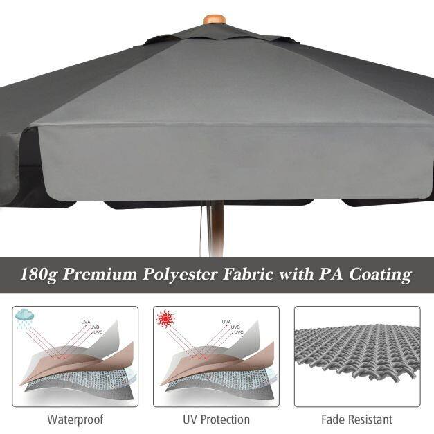 Ultimate Sun Protection: Together with the 20 cm long umbrella skirts, the 300 cm patio umbrella offers the perfect shade solution, shielding you from harsh sunshine. Besides, its canopy is made of 180g PA-coated polyester fabric to further enhance the sun protection and durability.