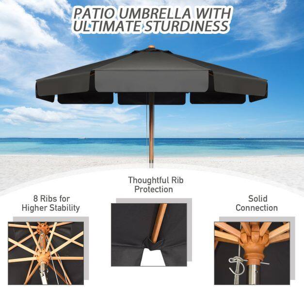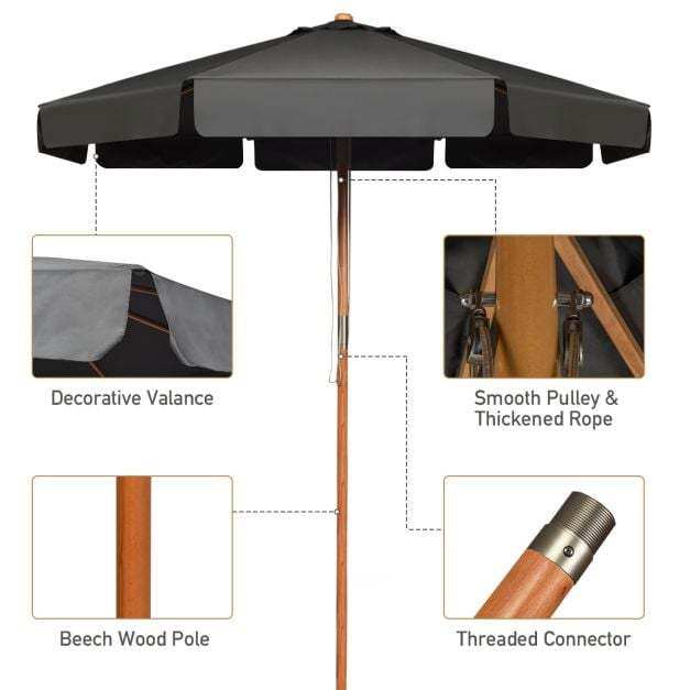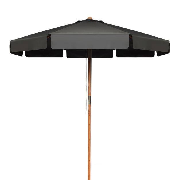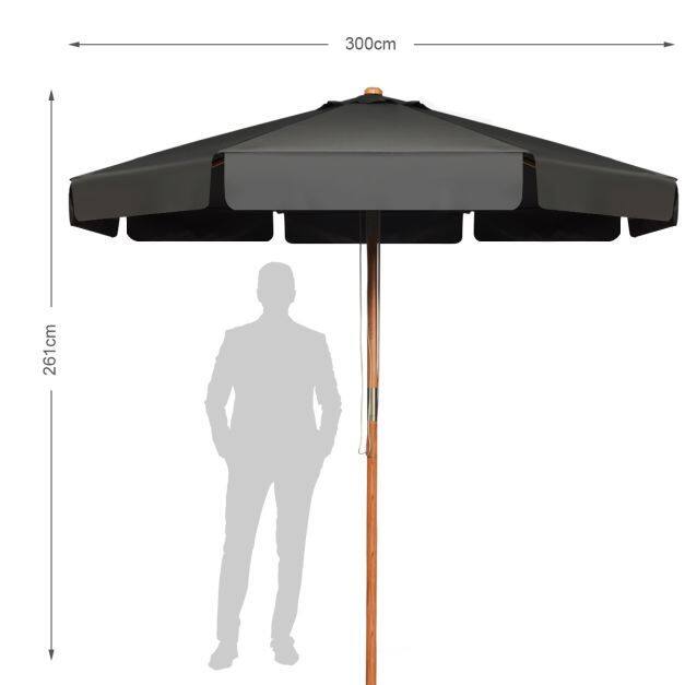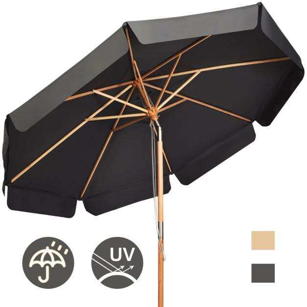 Beech Wood Pole & Ribs: For stable outdoor use, the table umbrella features a pole with a diameter of 47 mm that is made of solid and durable beech wood. In addition, its 8 beech wood ribs also help reinforce the structure for stability. Please do not use it in extreme weather.