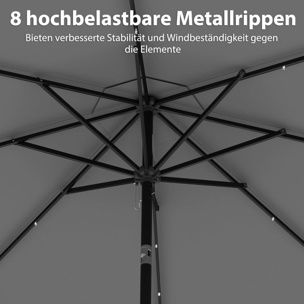8 heavy-duty metal ribs ensure unparalleled stability and wind resistance.