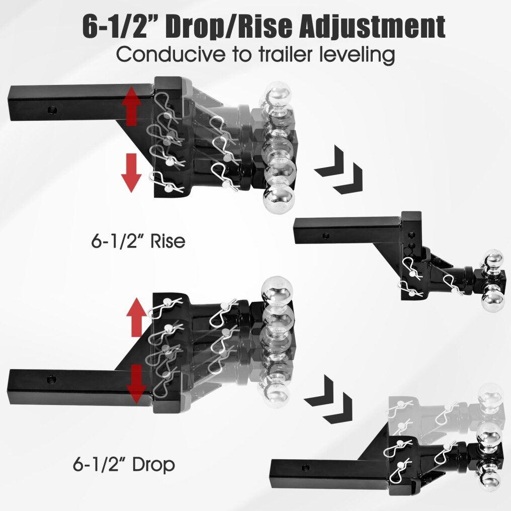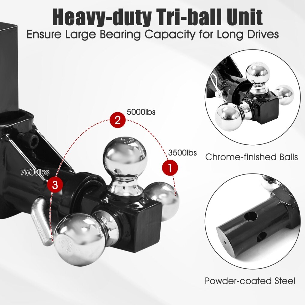 Come with 3 Size of Balls: This hitch features with 3 size balls(1-7/8", 2" and 2-5/16" ), which means it can fit for 3 different size trailer couplers at the same time.