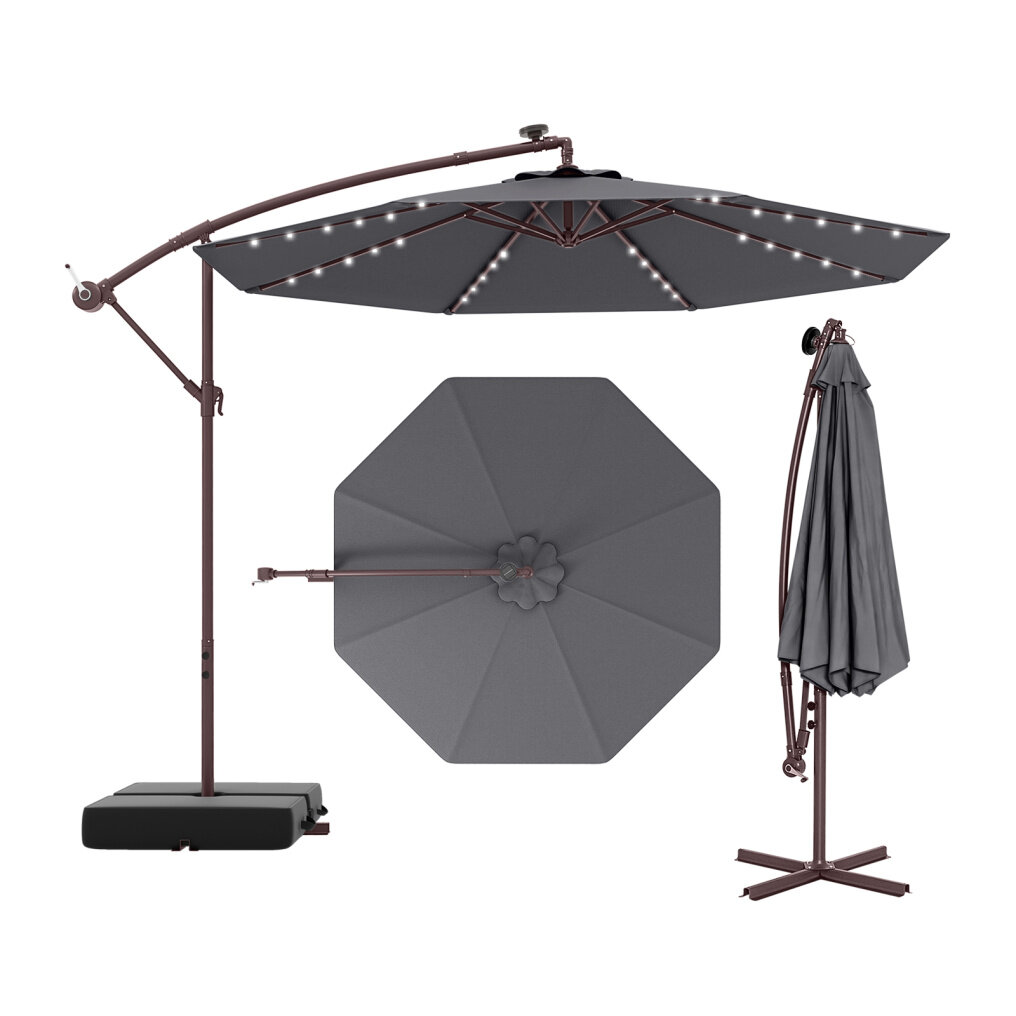 300cm Hanging Offset Umbrella with 40 LED Lights Solar Panel Batteries-Grey
