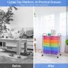 This colorful double-line rolling cart with 20 easy-access & removable drawers 20-drawer is perfect for home, classroom or art studio use.