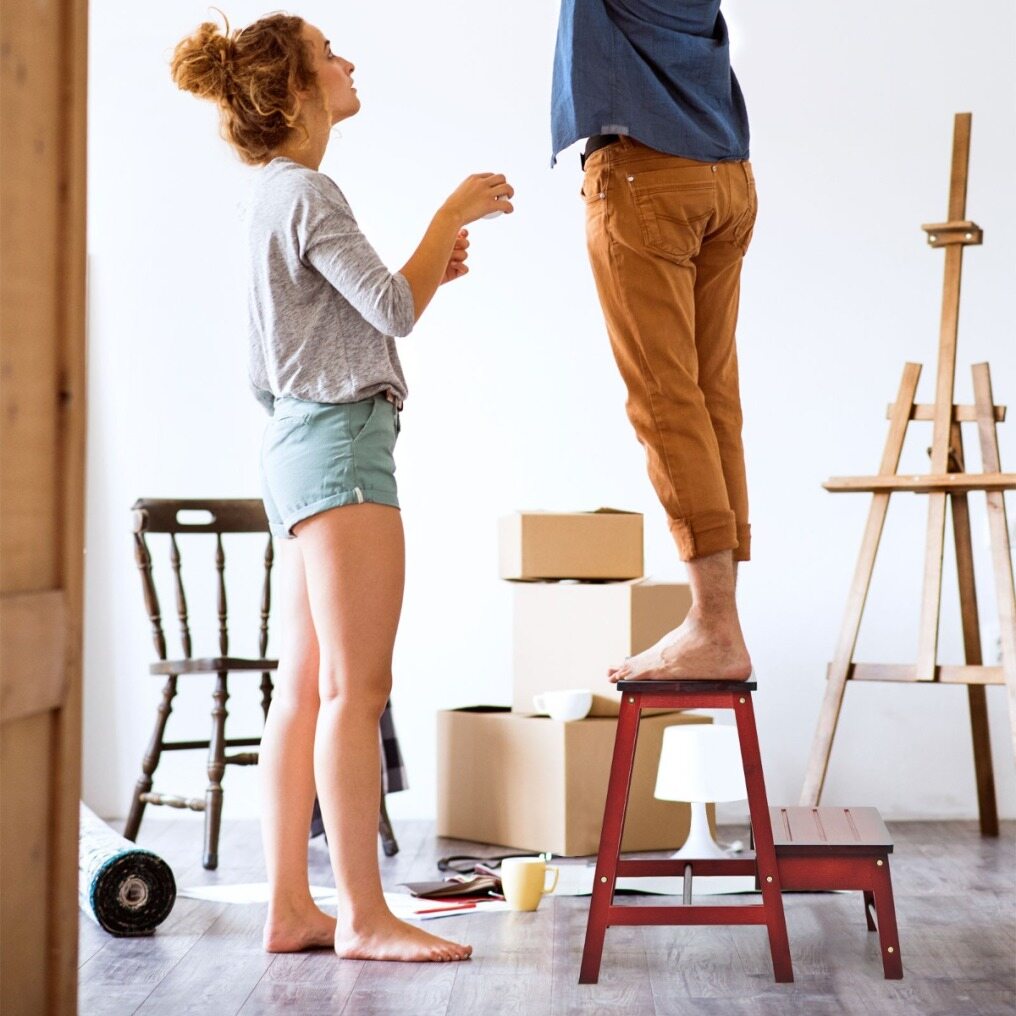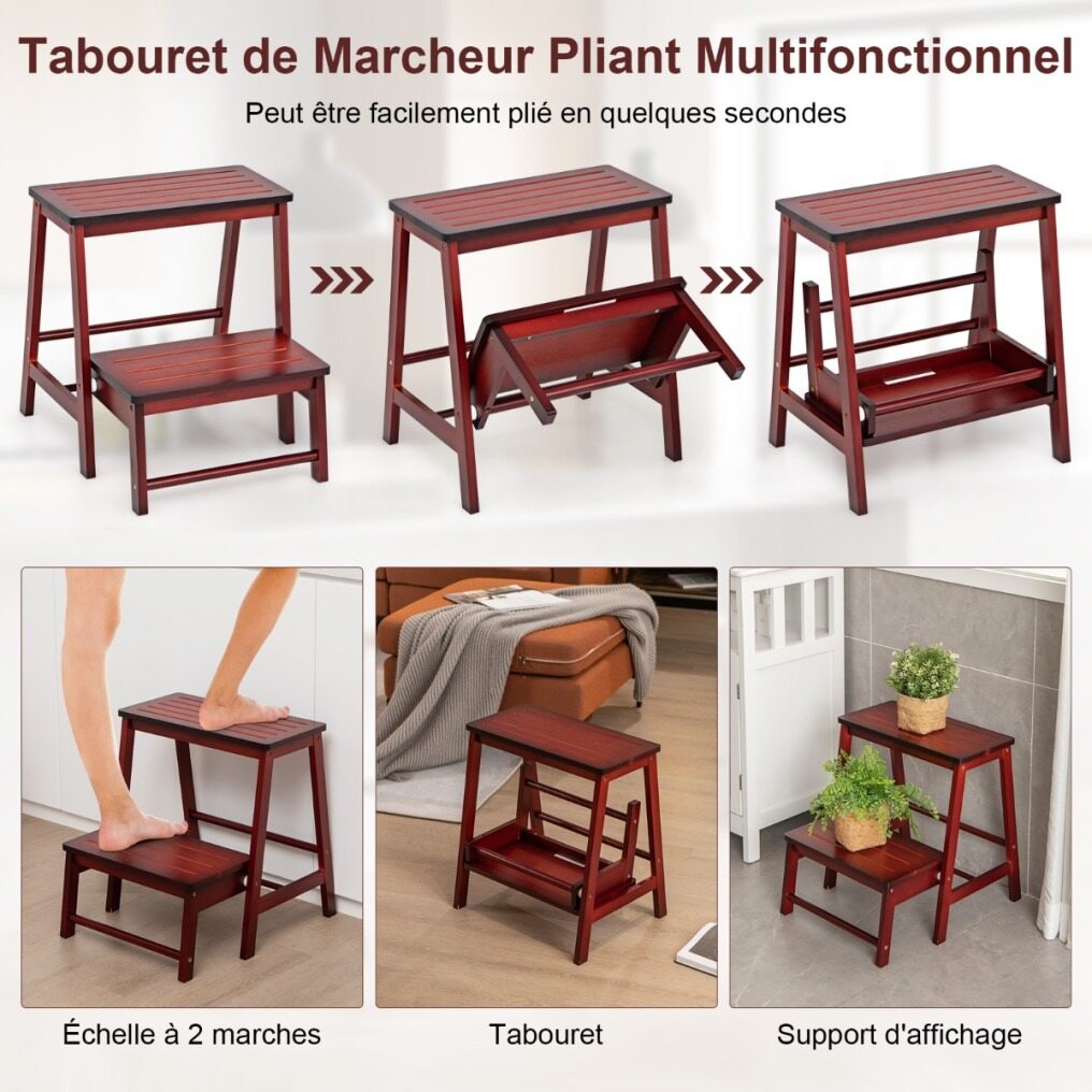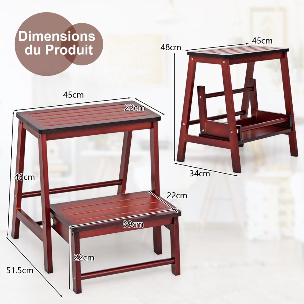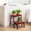 Foldable and Portable Design: It’s equipped with 2 steps and flip-over levers, so the bottom step can be easily rotated underneath the top step in seconds. Due to its compact size and lightweight, the wooden stepladder would not take up much floor space when not in use and is easy to carry anywhere you want.