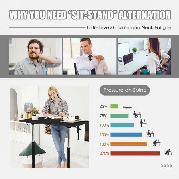 Wide Application and Free Movement: Featuring a simple and modern design, this standing desk will add a high-end feel to any workspace. It can be used as a side table, overbed table or office table to meet different needs. Besides, equipped with 4 universal wheels (2 are lockable), this laptop desk can be easily moved anywhere.