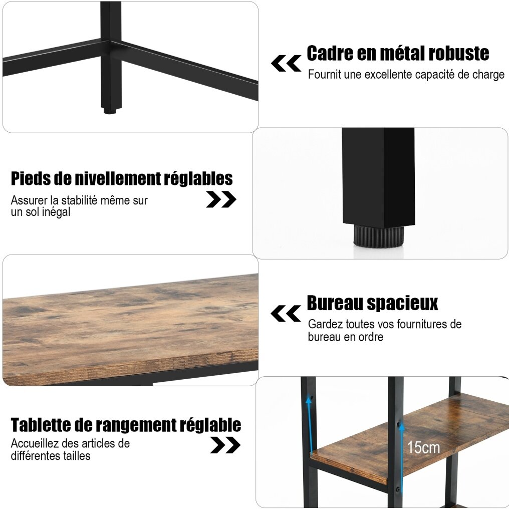 Adjustable foot pads make it stable even on uneven floors. The spacious desktop can keep your laptop, lamp, teacup, and all office supplies in order and easy to access. In addition, this table is also designed with 2 open shelves for storing your books, documents, and equipment. The upper shelf has two height adjustments and can be removed to make more room for your computer tower. This table is suitable for study, bedroom, living room or office to be used as a computer desk, writing desk, game table, and office workstation.