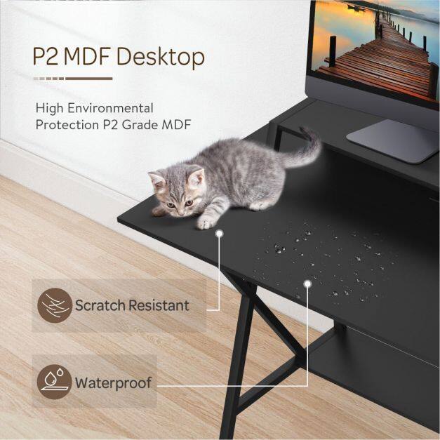 - Ergonomic Monitor Riser: Different from other products which only have the tabletop, this gamer workstation is equipped with an ergonomic monitor riser which provides comfortable gaming or working experience. And the bottom shelf is the perfect place to put a host or support your legs.