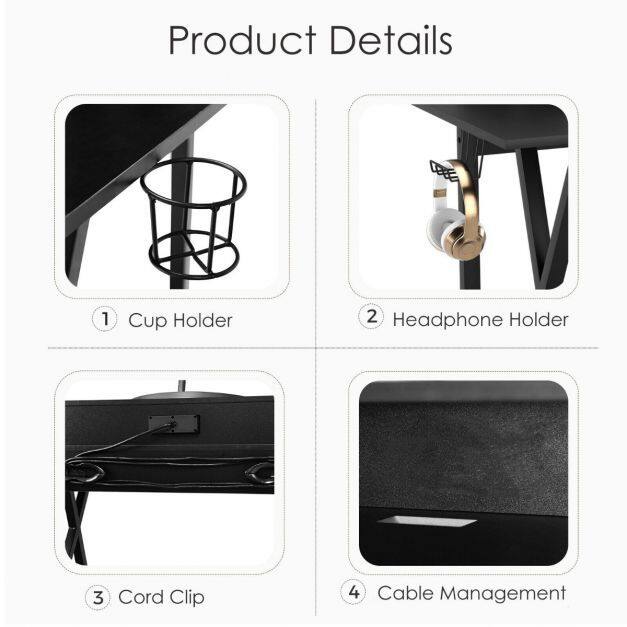 - Wide Application: Designed with modern and black appearance, this large writing table can be used as a gaming desk, working table and writing study desk in the home, office and other places. And the power cable management can store the cable with ease.