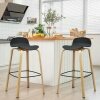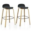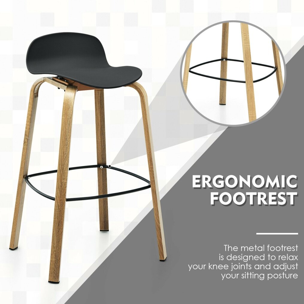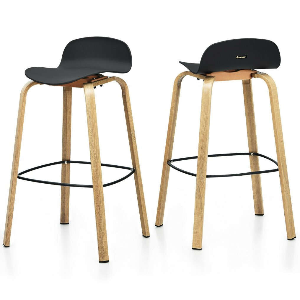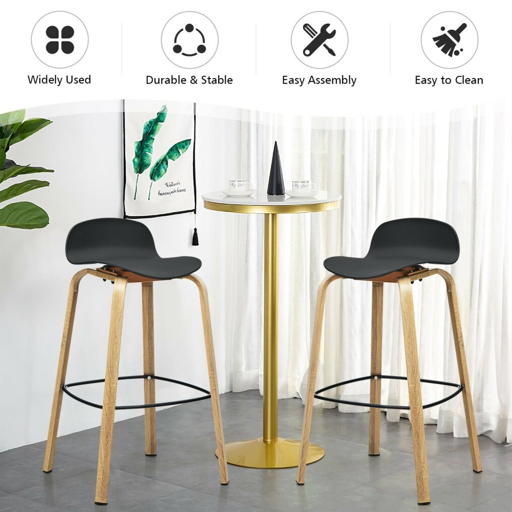 Set of 2 Modern Barstools Pub Chairs with Low Back and Metal Legs-Black