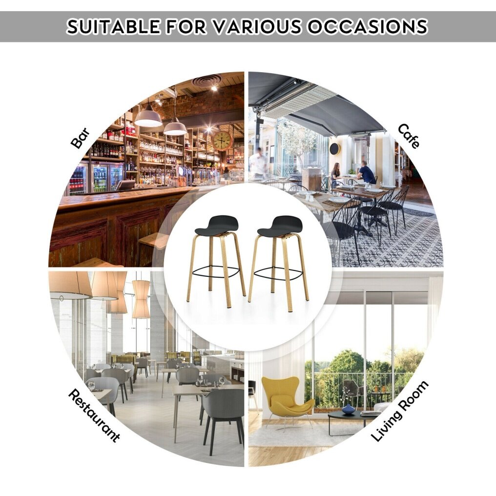 This set of 2 bar stools is the perfect combination of fashion and modernity, and it is suitable for pub, kitchen, restaurant, reception room and coffee shop. Made of high quality PP material, this chair set allows you to use it for a long time without deformation. The solid metal frame with non-slip foot pads not only provide you with strong support, but also protect the floor. Besides, the pub chairs are designed with durable and low-profile back for super comfort.