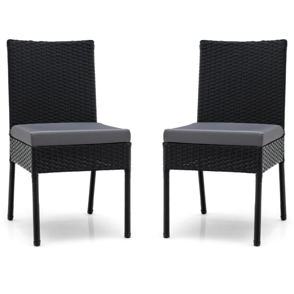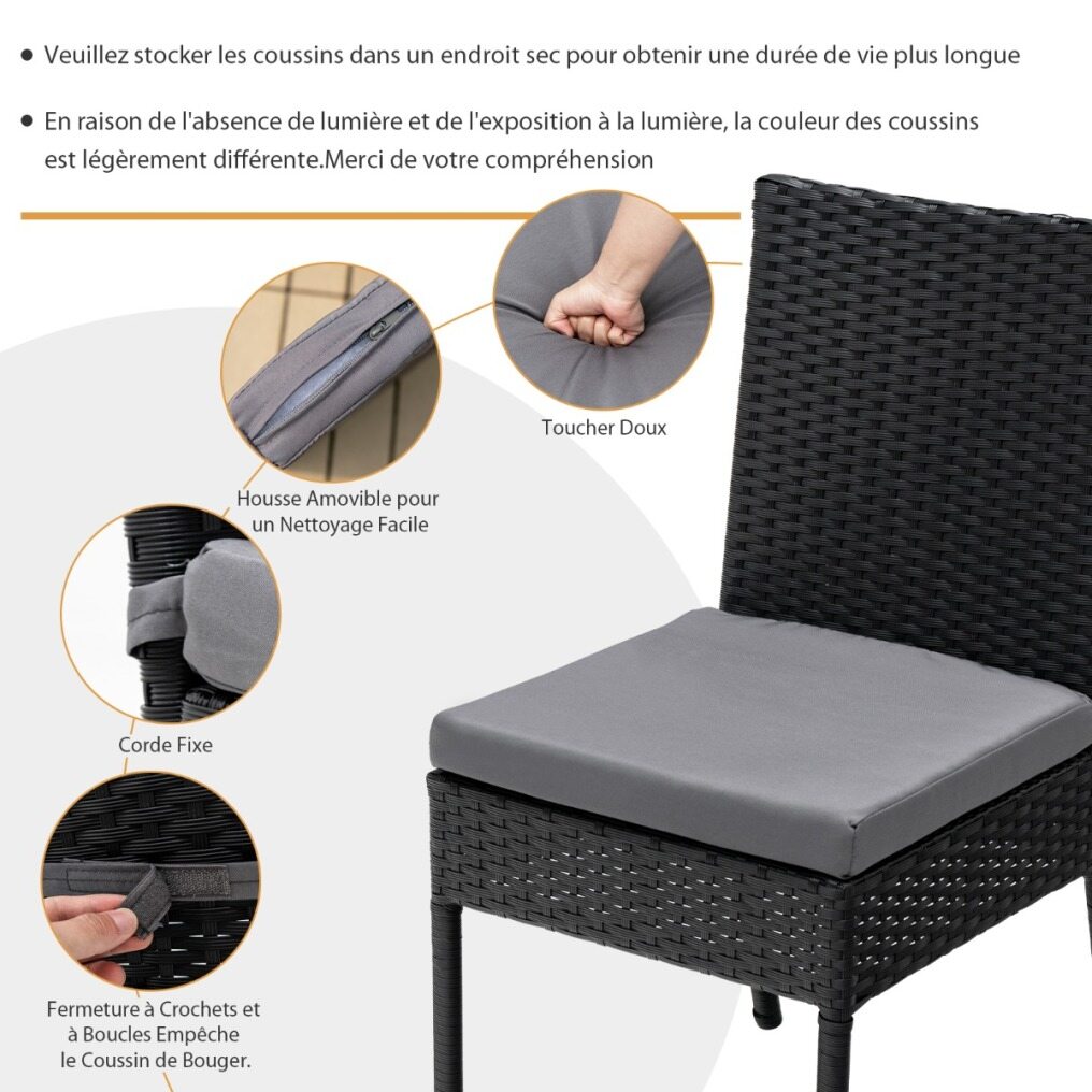 Selected Black PE Rattan: The high-quality PE wicker, which is weather-resistant, fade-resistant and sun-protective makes these patio dining chairs have a better performance in the outdoor environment. Besides, the PE rattan also endows the modern feeling for these outdoor chairs.